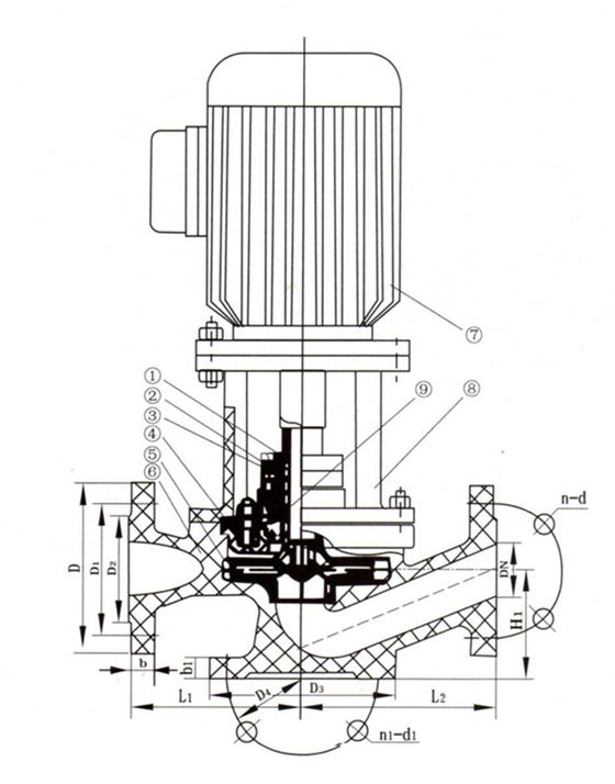 1 軸 2 軸套 3 機械密封 4 泵蓋 5 葉輪 6 泵體 7 電機 8 聯接架 9 密封壓蓋